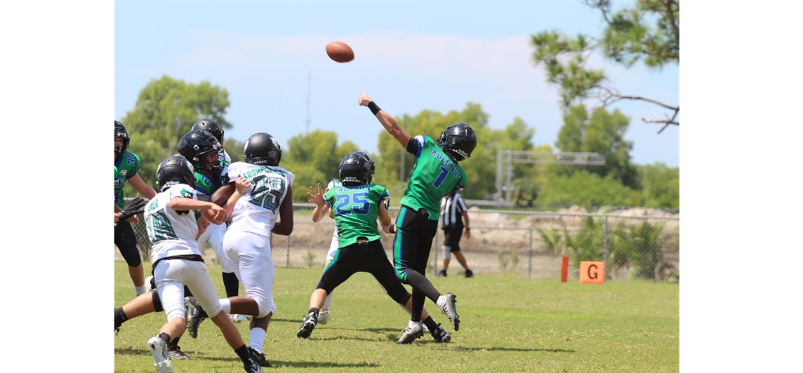 We are a non-profit youth football & cheerleading program servicing the Estero, San Carlos & Bonita Springs area. We depend solely on the support of the community for our league to survive. Our volunteers & sponsors are made up of local parents, students & businesses all here to make this a fun, positive learning experience in teamwork for your child. We hope that you will consider joining our ever growing family & wear your blue, green & white proudly in our upcoming season.